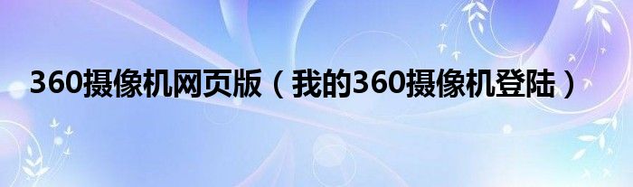 关于360摄像机网页版,我的360摄像机登陆这个很多人还不知道,今天菲菲来为大家解答以上的问题,现在让我们一起来看看吧!