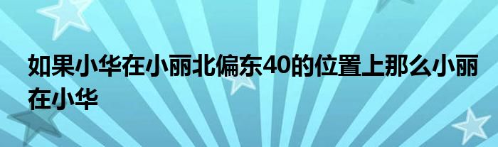 关于如果小华在小丽北偏东40的位置上那么小丽在小华这个很多人还不知道,今天菲菲来为大家解答以上的问题,现在让我们一起来看看吧!