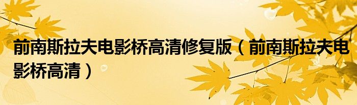 关于前南斯拉夫电影桥高清修复版,前南斯拉夫电影桥高清这个很多人还不知道,今天菲菲来为大家解答以上的问题,现在让我们一起来看看吧!