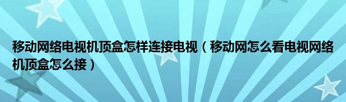 关于移动网络电视机顶盒怎样连接电视,移动网怎么看电视网络机顶盒怎么接这个很多人还不知道,今天菲菲来为大家解答以上的问题,现在让我们一起来看看吧!