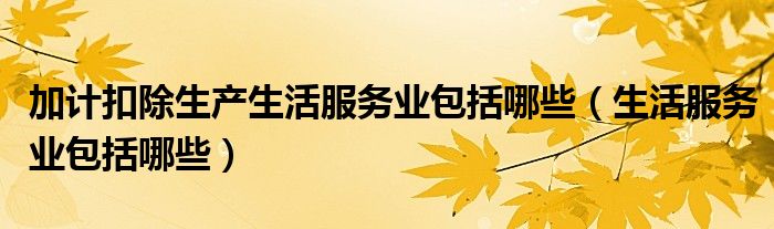 大家好,小晋来为大家解答以下问题,关于加计扣除生产生活服务业包括哪些,生活服务业包括哪些很多人还不知道,今天让我们一起来看看吧!