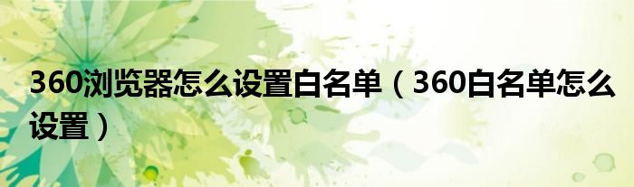 关于360浏览器怎么设置白名单,360白名单怎么设置这个很多人还不知道,今天菲菲来为大家解答以上的问题,现在让我们一起来看看吧!