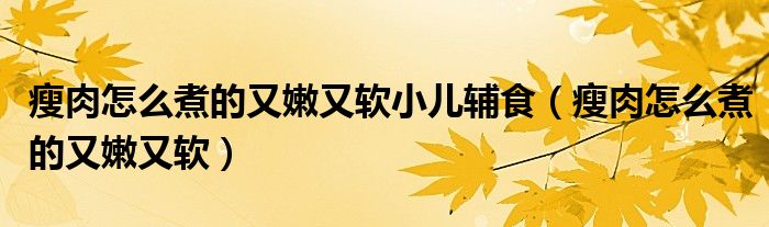 大家好,小晋来为大家解答以下问题,关于瘦肉怎么煮的又嫩又软小儿辅食,瘦肉怎么煮的又嫩又软很多人还不知道,今天让我们一起来看看吧!