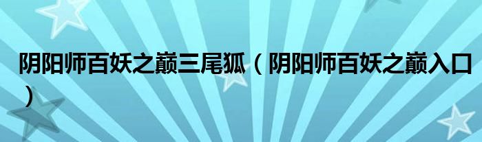 大家好,小晋来为大家解答以下问题,关于阴阳师百妖之巅三尾狐,阴阳师百妖之巅入口很多人还不知道,今天让我们一起来看看吧!