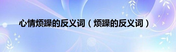 大家好,小晋来为大家解答以下问题,关于心情烦躁的反义词,烦躁的反义词很多人还不知道,今天让我们一起来看看吧!