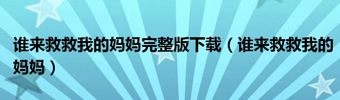 关于谁来救救我的妈妈完整版下载,谁来救救我的妈妈这个很多人还不知道,今天菲菲来为大家解答以上的问题,现在让我们一起来看看吧!