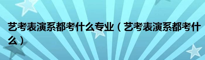 关于艺考表演系都考什么专业,艺考表演系都考什么这个很多人还不知道,今天菲菲来为大家解答以上的问题,现在让我们一起来看看吧!