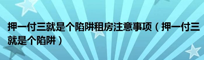大家好,小晋来为大家解答以下问题,关于押一付三就是个陷阱租房注意事项,押一付三就是个陷阱很多人还不知道,今天让我们一起来看看吧!