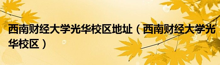 西南财经大学光华校区地址(西南财经大学光华校区)