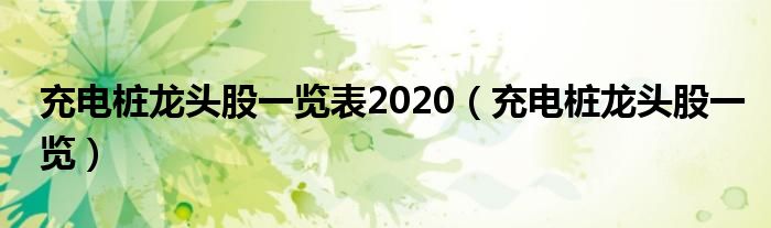 关于充电桩龙头股一览表2020,充电桩龙头股一览这个很多人还不知道,今天菲菲来为大家解答以上的问题,现在让我们一起来看看吧!