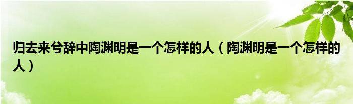 大家好,小晋来为大家解答以下问题,关于归去来兮辞中陶渊明是一个怎样的人,陶渊明是一个怎样的人很多人还不知道,今天让我们一起来看看吧!