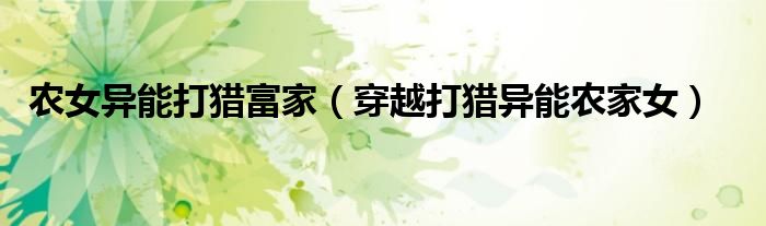 关于农女异能打猎富家,穿越打猎异能农家女这个很多人还不知道,今天菲菲来为大家解答以上的问题,现在让我们一起来看看吧!