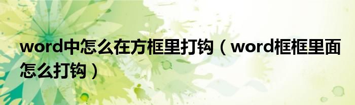 关于word中怎么在方框里打钩,word框框里面怎么打钩这个很多人还不知道,今天菲菲来为大家解答以上的问题,现在让我们一起来看看吧!