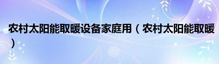 1、说到农村供暖,我们首先想到的是带烟囱的采暖炉。但是随着生活水平的提高,我们现在农村有了更好的供暖设备,就是太阳能供暖,这是一种非常适合农村情况的供暖设备,而且非常节能环保,使用起来非常方便。所以今天,边肖将为你介绍一些关于太阳能供暖的信息。