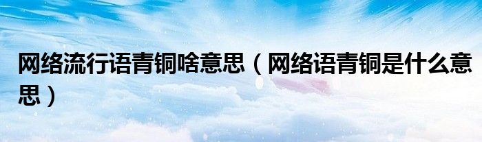 关于网络流行语青铜啥意思,网络语青铜是什么意思这个很多人还不知道,今天菲菲来为大家解答以上的问题,现在让我们一起来看看吧!
