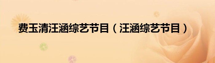 费玉清汪涵综艺节目(汪涵综艺节目)