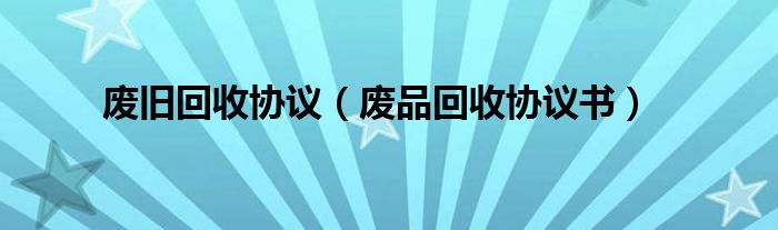 关于废旧回收协议,废品回收协议书这个很多人还不知道,今天菲菲来为大家解答以上的问题,现在让我们一起来看看吧!