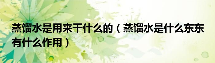 关于蒸馏水是用来干什么的,蒸馏水是什么东东 有什么作用这个很多人还不知道,今天菲菲来为大家解答以上的问题,现在让我们一起来看看吧!