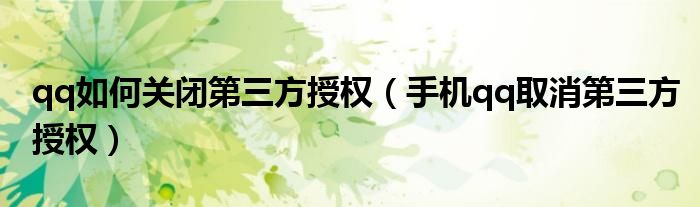 qq如何关闭第三方授权(手机qq取消第三方授权)
