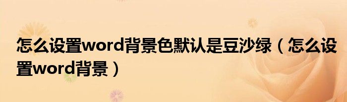 关于怎么设置word背景色默认是豆沙绿,怎么设置word背景这个很多人还不知道,今天菲菲来为大家解答以上的问题,现在让我们一起来看看吧!