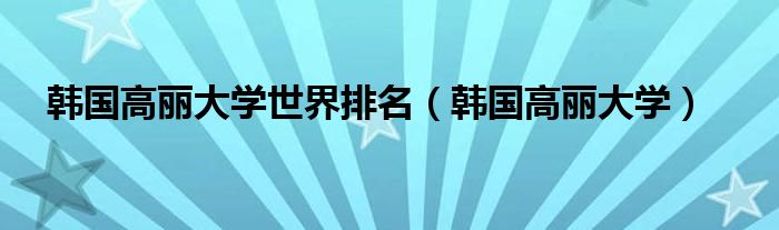 大家好,小晋来为大家解答以下问题,关于韩国高丽大学世界排名,韩国高丽大学很多人还不知道,今天让我们一起来看看吧!