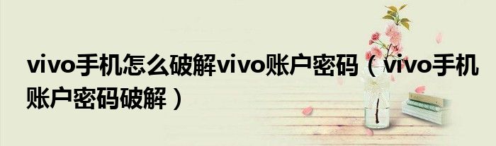 大家好,小晋来为大家解答以下问题,关于vivo手机怎么破解vivo账户密码,vivo手机账户密码破解很多人还不知道,今天让我们一起来看看吧!