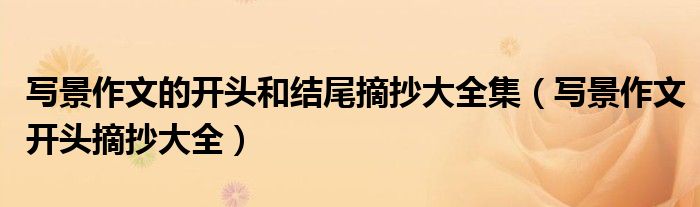 关于写景作文的开头和结尾摘抄大全集,写景作文开头摘抄大全这个很多人还不知道,今天菲菲来为大家解答以上的问题,现在让我们一起来看看吧!