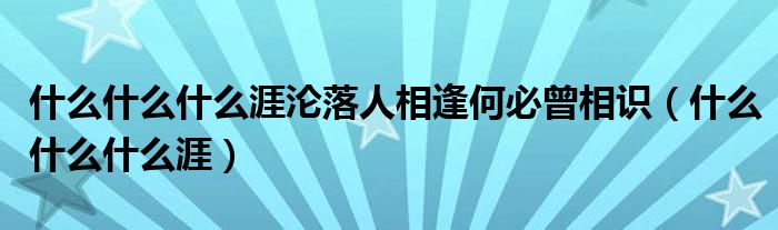 大家好,小晋来为大家解答以下问题,关于什么什么什么涯沦落人相逢何必曾相识,什么什么什么涯很多人还不知道,今天让我们一起来看看吧!