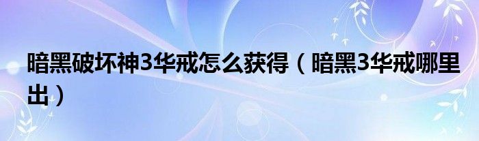 关于暗黑破坏神3华戒怎么获得,暗黑3华戒哪里出这个很多人还不知道,今天菲菲来为大家解答以上的问题,现在让我们一起来看看吧!