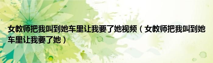 关于女教师把我叫到她车里让我要了她视频,女教师把我叫到她车里让我要了她这个很多人还不知道,今天菲菲来为大家解答以上的问题,现在让我们一起来看看吧!