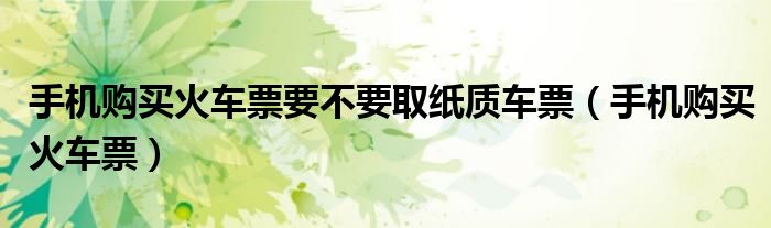 大家好,小晋来为大家解答以下问题,关于手机购买火车票要不要取纸质车票,手机购买火车票很多人还不知道,今天让我们一起来看看吧!
