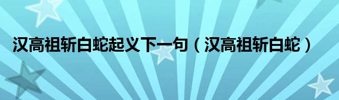 关于汉高祖斩白蛇起义下一句,汉高祖斩白蛇这个很多人还不知道,今天菲菲来为大家解答以上的问题,现在让我们一起来看看吧!