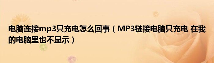 关于电脑连接mp3只充电怎么回事,MP3链接电脑只充电 在我的电脑里也不显示这个很多人还不知道,今天菲菲来为大家解答以上的问题,现在让我们一起来看看吧!