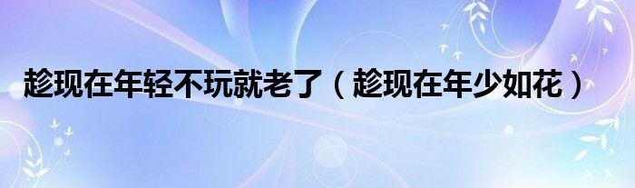 趁现在年轻不玩就老了,趁现在年少如花很多人还不知道,乐乐来为大家解答以上问题,现在让我们一起来看看吧!