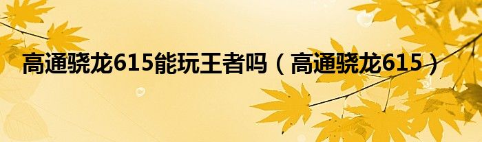 大家好,小晋来为大家解答以下问题,关于高通骁龙615能玩王者吗,高通骁龙615很多人还不知道,今天让我们一起来看看吧!