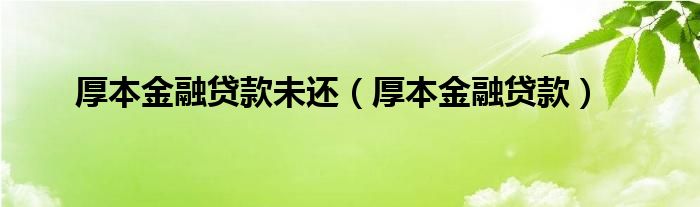 大家好,小晋来为大家解答以下问题,关于厚本金融贷款未还,厚本金融贷款很多人还不知道,今天让我们一起来看看吧!