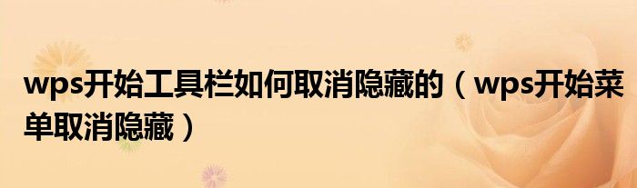 关于wps开始工具栏如何取消隐藏的,wps开始菜单取消隐藏这个很多人还不知道,今天菲菲来为大家解答以上的问题,现在让我们一起来看看吧!