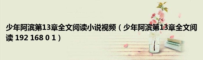 大家好,来宝来为大家解答以下问题,少年阿滨第13章全文阅读小说视频,少年阿滨第13章全文阅读 192 168 0 1很多人还不知道,今天让我们一起来看看吧!