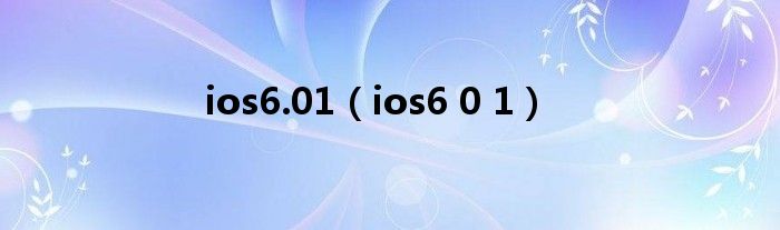 大家好,来宝来为大家解答以下问题,ios6.01,ios6 0 1很多人还不知道,今天让我们一起来看看吧!