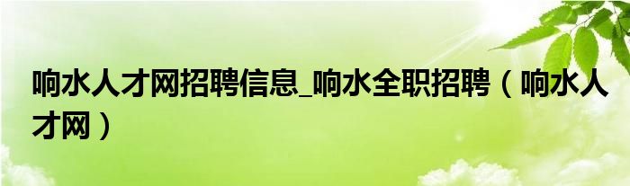 关于响水人才网招聘信息_响水全职招聘,响水人才网这个很多人还不知道,今天菲菲来为大家解答以上的问题,现在让我们一起来看看吧!