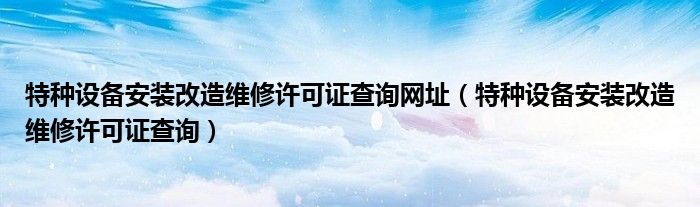 关于特种设备安装改造维修许可证查询网址,特种设备安装改造维修许可证查询这个很多人还不知道,今天菲菲来为大家解答以上的问题,现在让我们一起来看看吧!