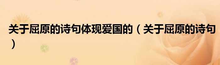 大家好,小晋来为大家解答以下问题,关于关于屈原的诗句体现爱国的,关于屈原的诗句很多人还不知道,今天让我们一起来看看吧!