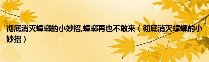 大家好,小晋来为大家解答以下问题,关于彻底消灭蟑螂的小妙招,蟑螂再也不敢来,彻底消灭蟑螂的小妙招很多人还不知道,今天让我们一起来看看吧!