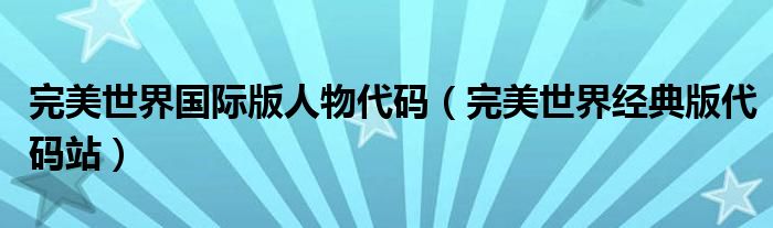 关于完美世界国际版人物代码,完美世界经典版代码站这个很多人还不知道,今天菲菲来为大家解答以上的问题,现在让我们一起来看看吧!