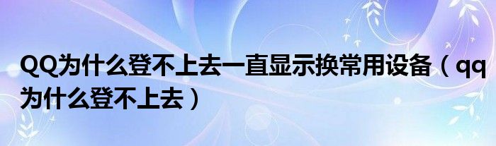 关于QQ为什么登不上去一直显示换常用设备,qq为什么登不上去这个很多人还不知道,今天菲菲来为大家解答以上的问题,现在让我们一起来看看吧!