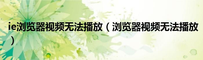 关于ie浏览器视频无法播放,浏览器视频无法播放这个很多人还不知道,今天菲菲来为大家解答以上的问题,现在让我们一起来看看吧!