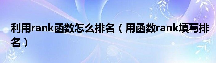 大家好,小晋来为大家解答以下问题,关于利用rank函数怎么排名,用函数rank填写排名很多人还不知道,今天让我们一起来看看吧!
