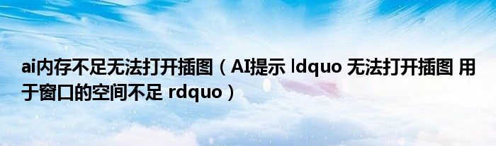 关于ai内存不足无法打开插图,AI提示 ldquo 无法打开插图 用于窗口的空间不足 rdquo这个很多人还不知道,今天菲菲来为大家解答以上的问题,现在让我们一起来看看吧!