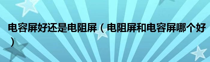 大家好,来宝来为大家解答以下问题,电容屏好还是电阻屏,电阻屏和电容屏哪个好很多人还不知道,今天让我们一起来看看吧!