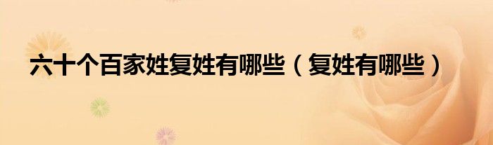 关于六十个百家姓复姓有哪些,复姓有哪些这个很多人还不知道,今天菲菲来为大家解答以上的问题,现在让我们一起来看看吧!